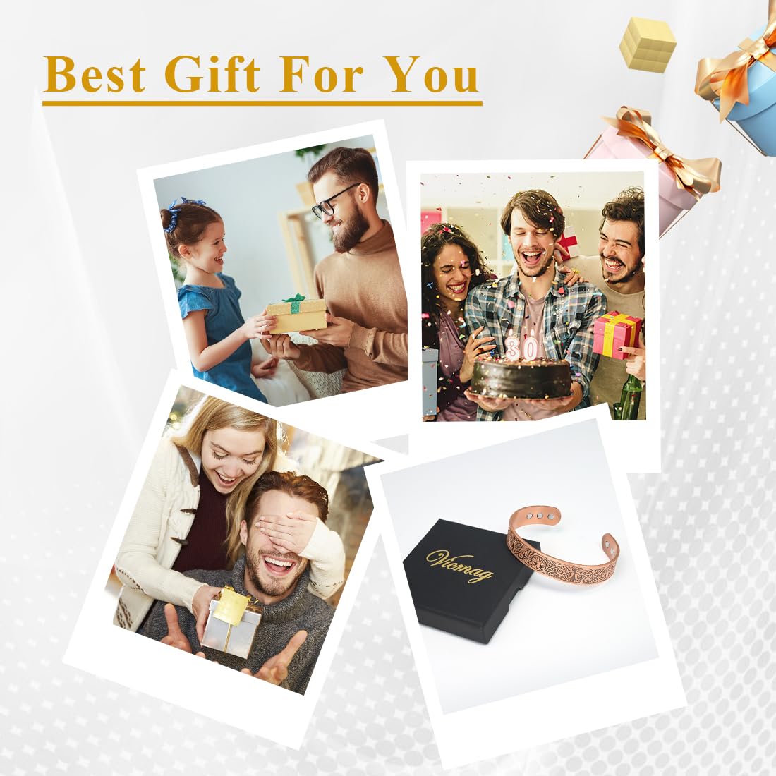 Vicmag Copper Bracelet for Men 9X Strength Magnetic 99% Pure Copper with 5000 Gauss Magnets, Tree of Life Present Box Adjustable