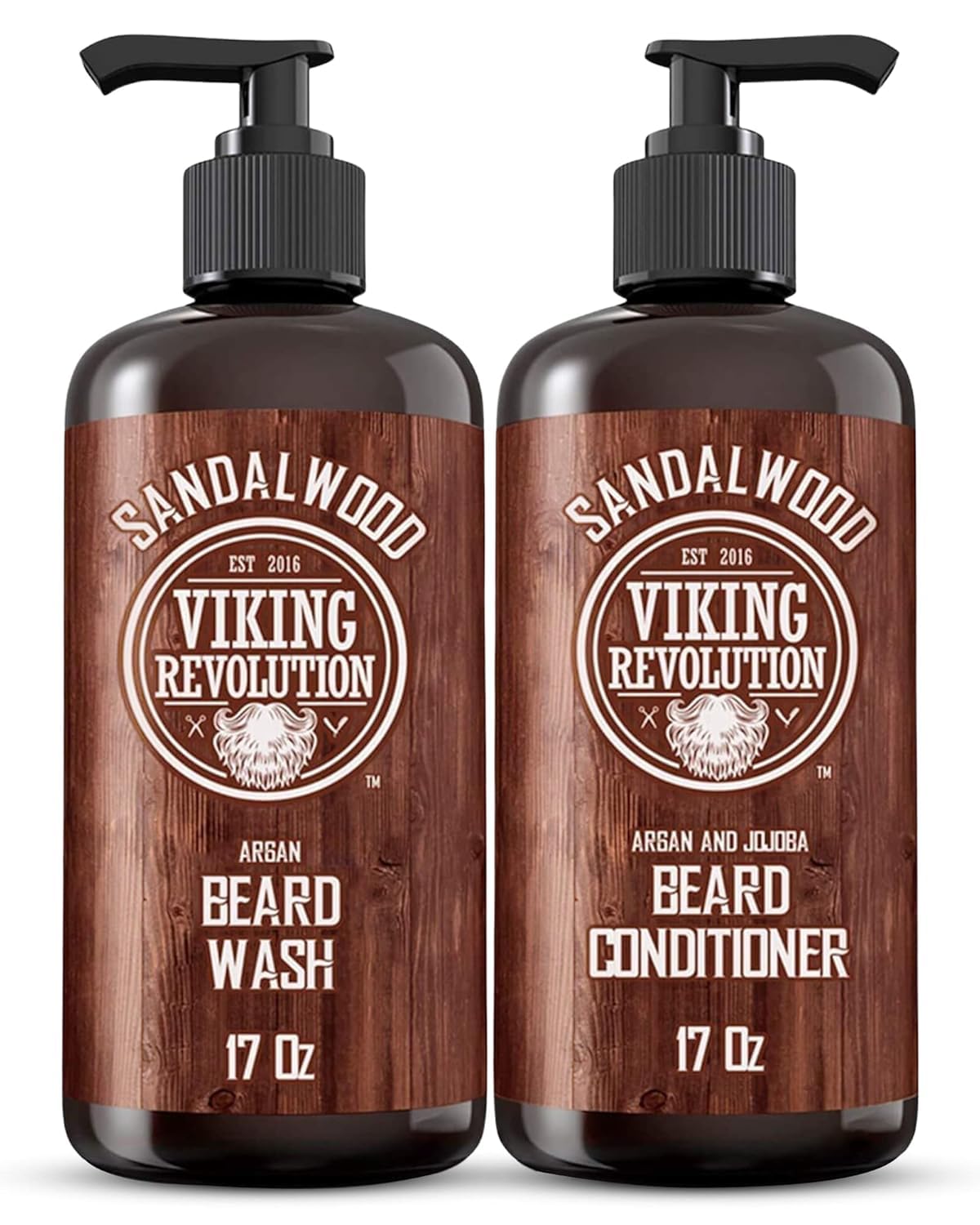 Viking Revolution - Beard Shampoo & Conditioner Set - Softens, Smooths & Strengthens Beard Growth - Beard Shampoo for Men - Sandalwood Fragrance - Gifts for Men - 2 x 500 ml