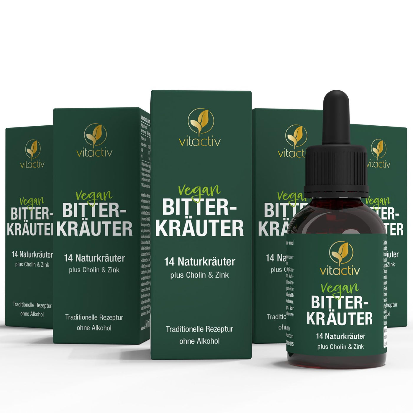 VITACTIV bitter herbs - bitter drops without alcohol - select herbs plus choline & zinc - bitter substances drops according to Hildegard von Bingen - no artificial additives, sugar-free, vegan - 250 ml 250 ml (set of 5)