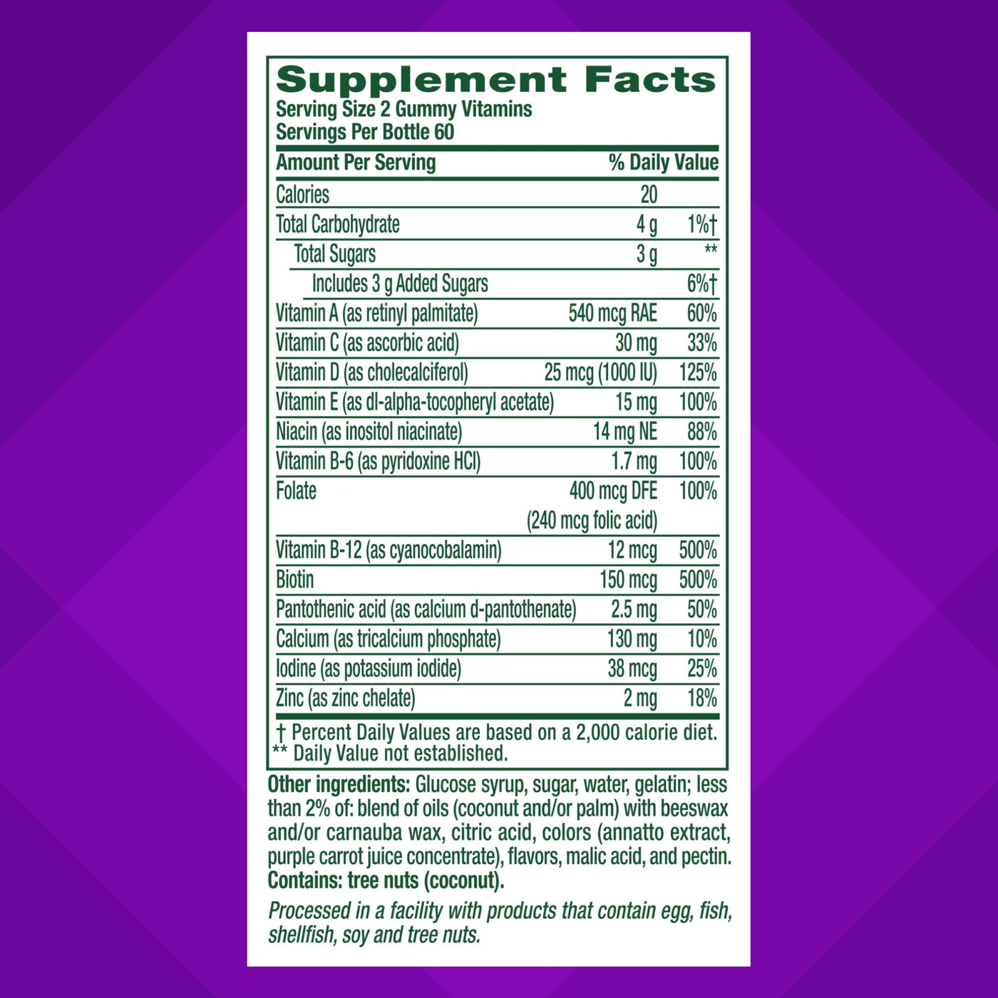- HEALTH AND WELLNESS SUPPORT OF WOMEN 50+ - Each two-gummy serving of these adult multivitamins for women provides essential vitamins, minerals including B Vitamins to help support heart health and brain nourishment*