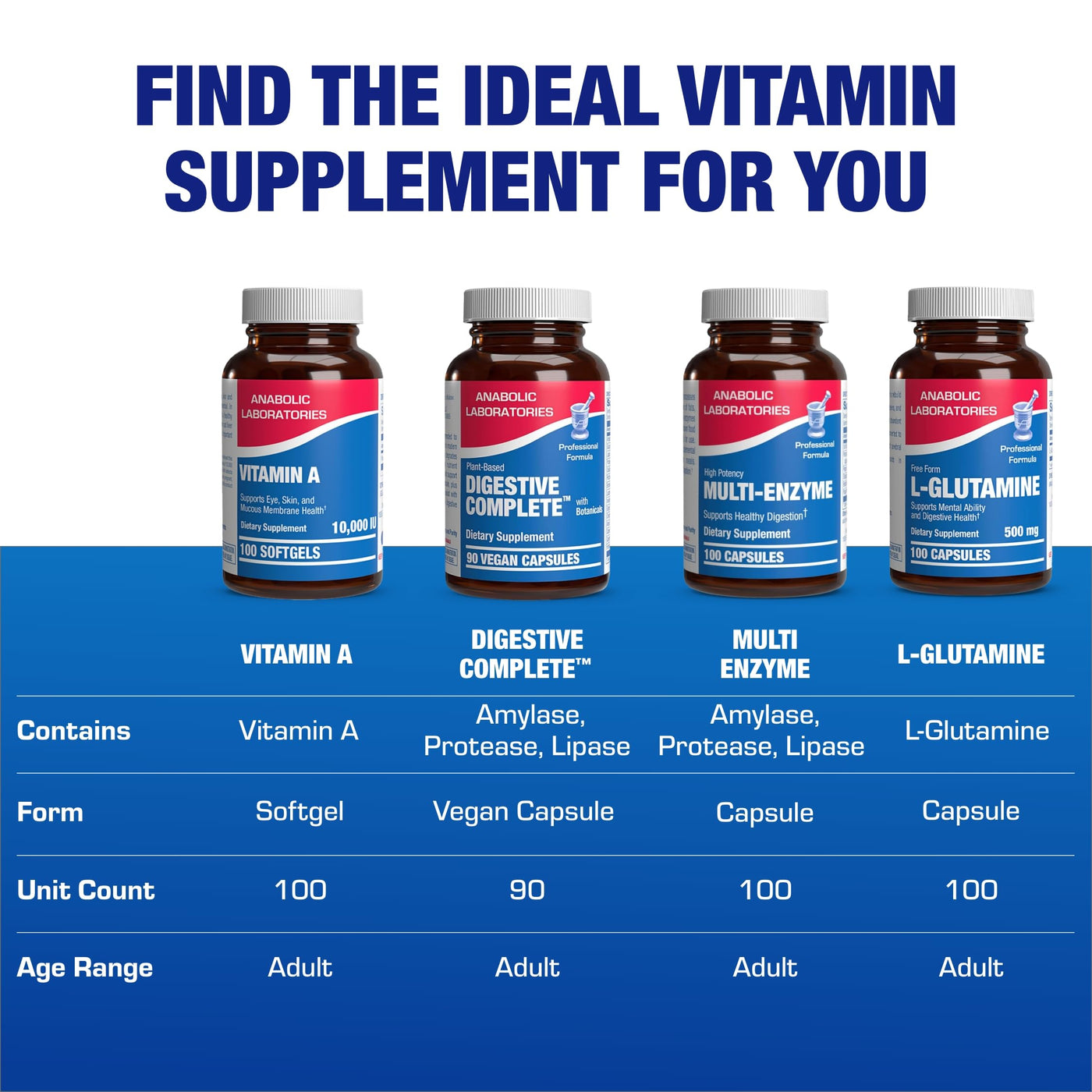- Trusted Name Since 1924: Anabolic Laboratories has been committed to providing the highest quality nutritional products for 100 years and counting including our naturally derived vitamin A supplements