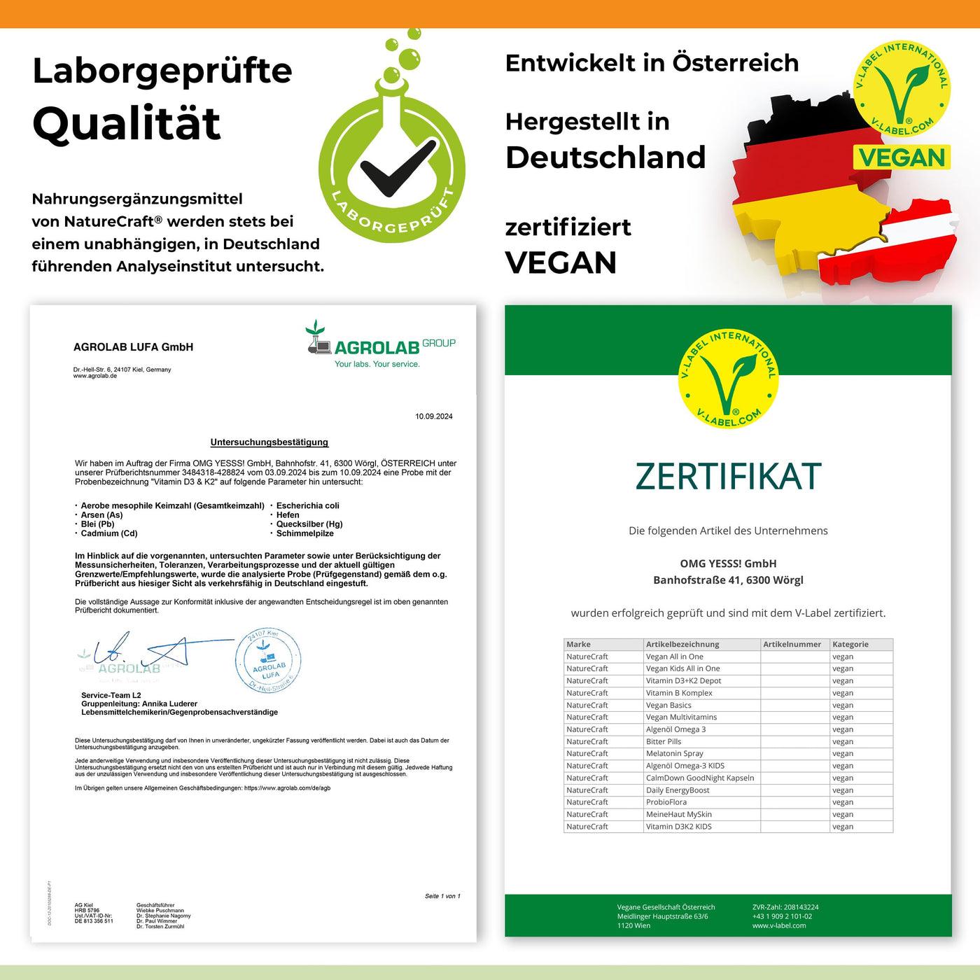 - The recipe developed in AUSTRIA is produced in GERMANY according to strict quality standards according to HACCP standards. Each batch is continuously tested by an independent German DIN EN ISO/IEC 17025 certified laboratory.