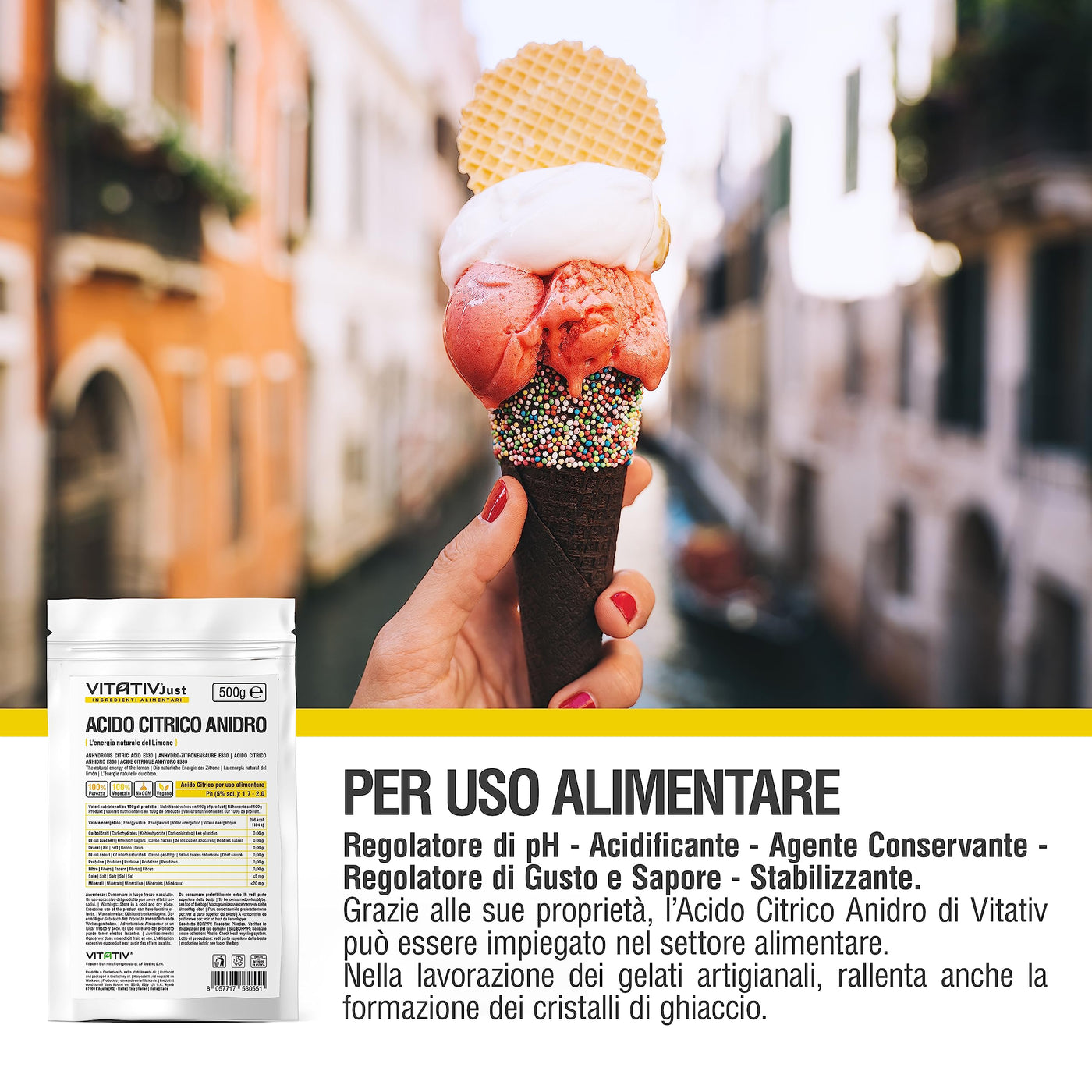- VERSATILE USES | The anhydrous citric acid Vitativ is your ally in the kitchen. Can be used to beat egg whites, invert sugar, cheese and much more. Discover all the ways it can improve your dishes.