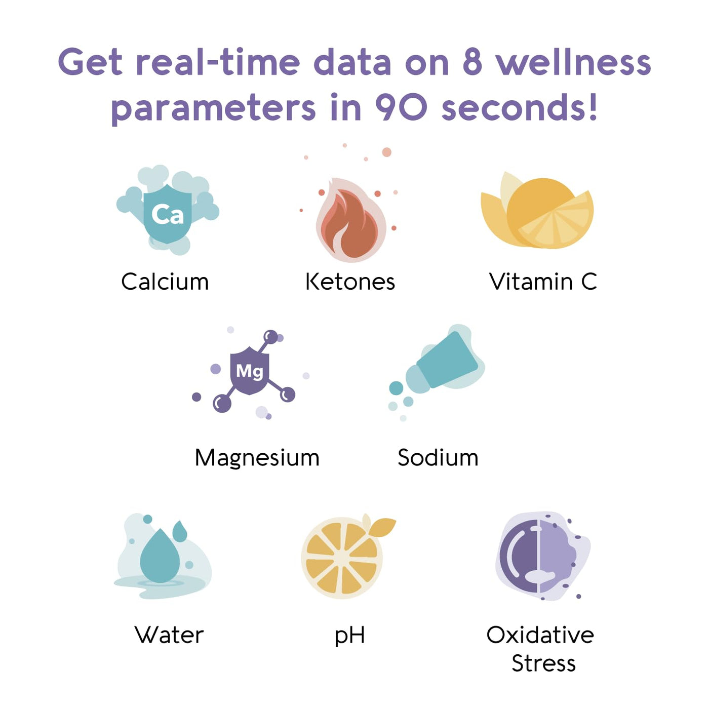 - COMPREHENSIVE 8-IN-1 URINE ANALYSIS FOR TOTAL WELLNESS Each Vivoo test strip measures 8 essential wellness markers including hydration, sodium, ketone, pH, vitamin C, calcium, magnesium, and oxidative stress. More than a simple pH test kit or keto urine test, Vivoo offers full-body insights and personalized recommendations for better nutrition and long-term wellness.