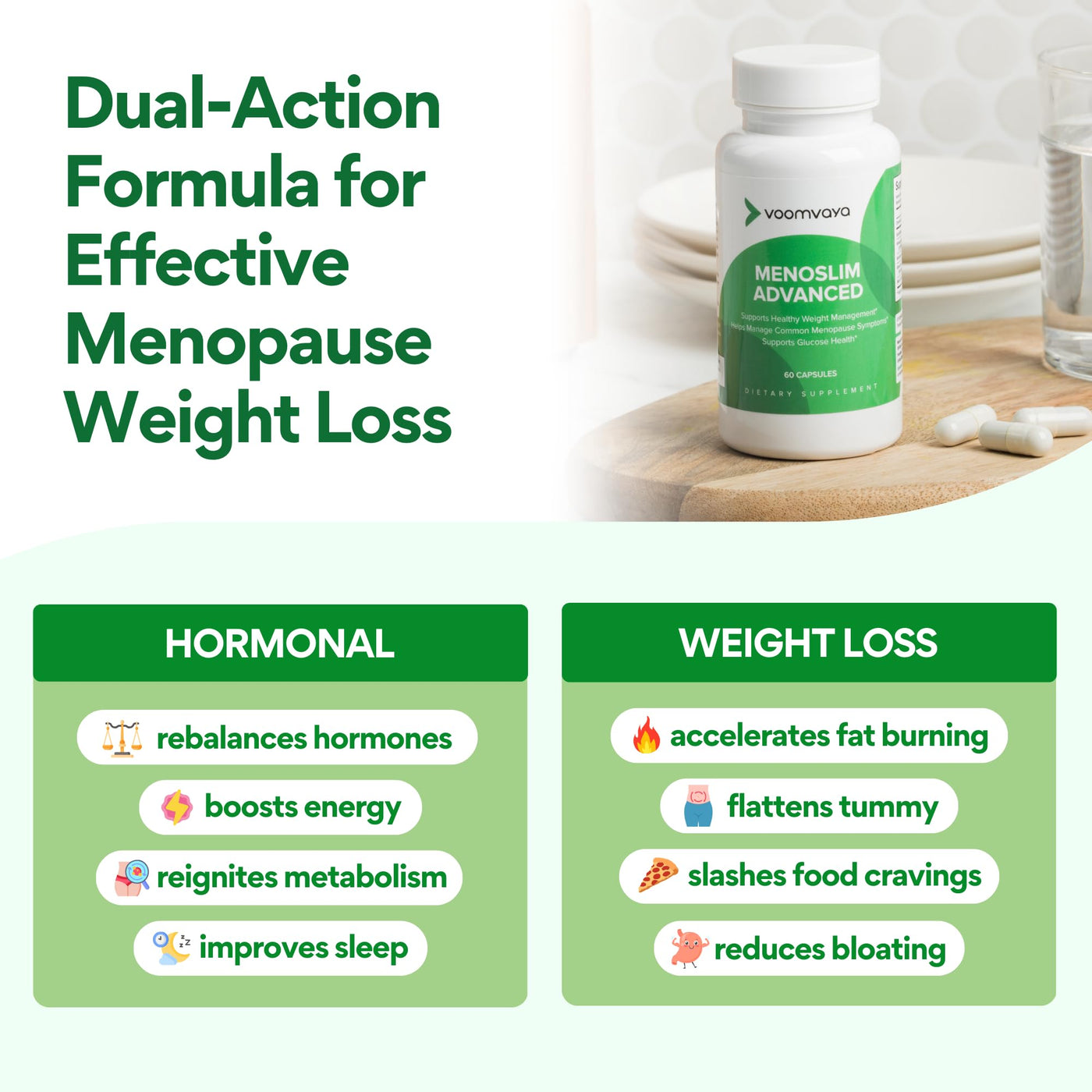 VoomVaya MenoSlim Advanced Menopause Weight Loss for Women - Menopause & Perimenopause Supplements for Women - Estrogen Supplement & Menopause Relief for Hot Flashes, Bloating, Energy - 60 Capsules
