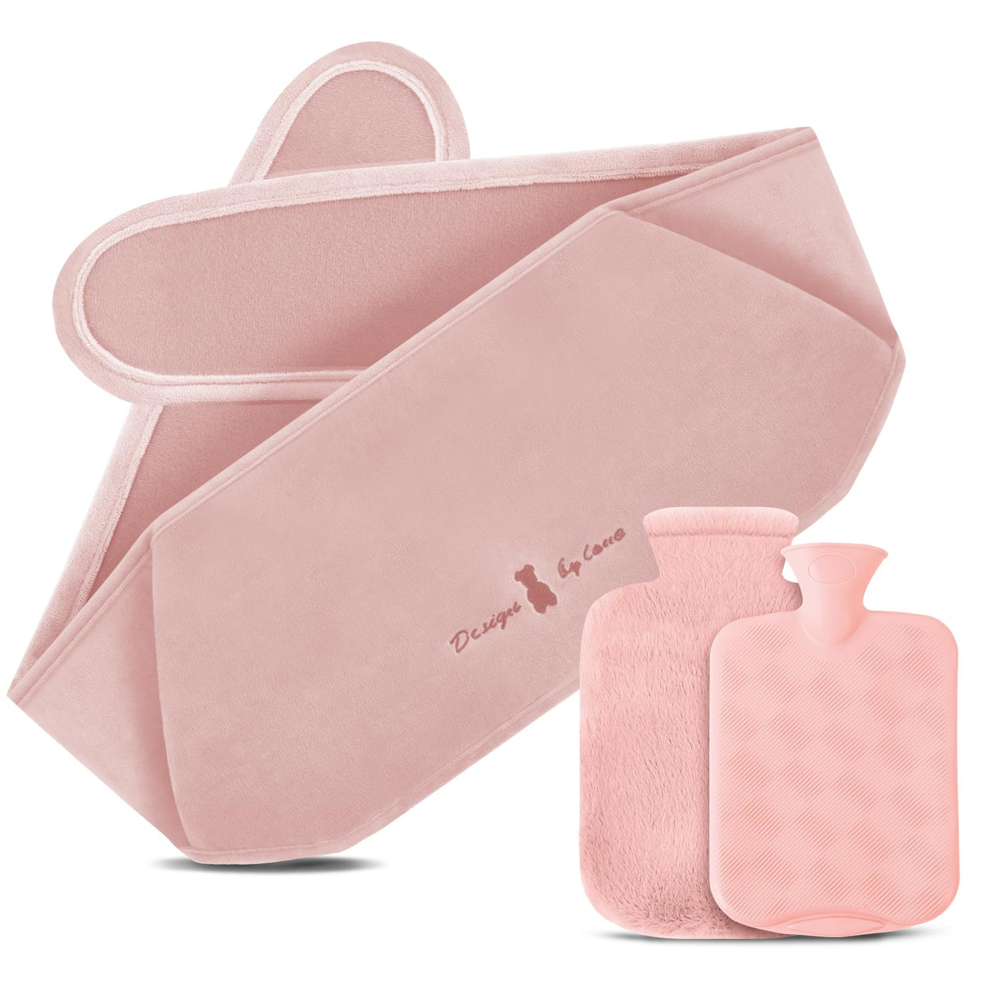 Votoko hot water bottle belt, 3 in 1 hot water bottle belt, 1.2 L hot water bottle made of rubber with soft waist cover, hot water bottle belt for neck and shoulder, back, legs, waist warming (pink)
