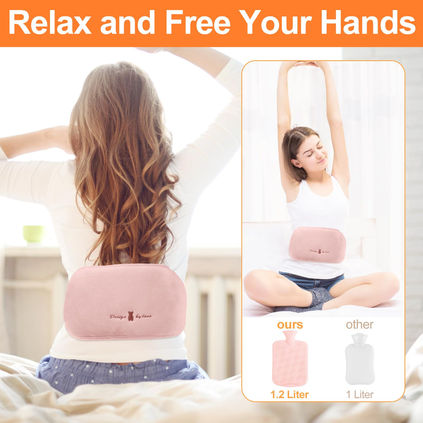 Votoko Hot Water Bottle Belt, 3 in 1 Hot Water Bottle Belt, 1.2 L Rubber Hot Water Bottle with Soft Waist Cover, Hot Water Bottle Belt for Neck and Shoulder, Back, Legs, Waist Warming (Pink) Pink