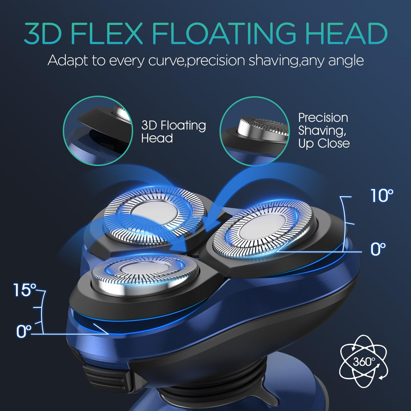 - EFFECTIVE& CLOSE SHAVE - 3D Floating rotary shaver head automatically adapts to the contours of your face and neck bringing you an effective and smooth shaving experience. Moreover, the self-sharpening blades designed for durability, which can save your time to change the blade.