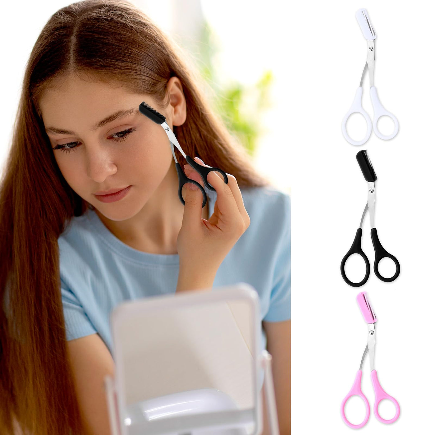 Wanmu 3pcs Eyebrow Scissors, Eyebrow Shaping Scissors Precision Eyebrow trimmer scissors eyebrow trimmer scissors trimming scissors for men Women Category: Professional Eyebrow Scissors Color: Black, White, PinkMaterial: Plastic, Stainless SteelFunction: Eyelashes and eyebrows trimProduct size: 5.04 × 2.5 × 0.28 inchesPacking list: 3 pieces × Eyebrow Comb Scissors (Black, White, Pink)