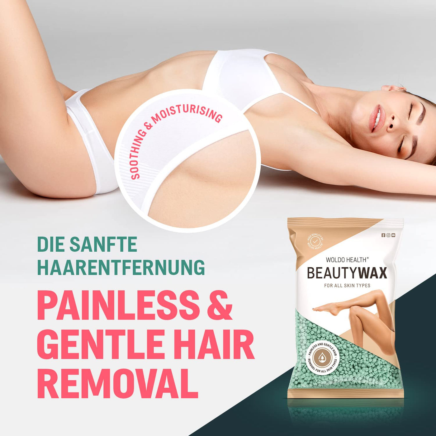 Product description Wax beads for hair removal and depilation after first application for the intimate area, legs, arms, face, upper lip, Bikini area, neck and chest. Easy to use: apply against the Hair growth direction. A thin layer is completely sufficient. The wax hardens very fast (approx. 20 seconds).;The elastic and soft wax beads for the Professional hair removal is easy to use without any need Non-woven strips.;Hot wax beads with a creamy texture for Full body hair removal on the body. Waxing beads with low melting point extract hair from depth of the. Instructions for use 1. Apply the wax on the desired area of the body in the opposite direction to the hair growth. 2. Wait for the wax to harden (about 20 seconds). 3. Remove the wax, take the hair with you.