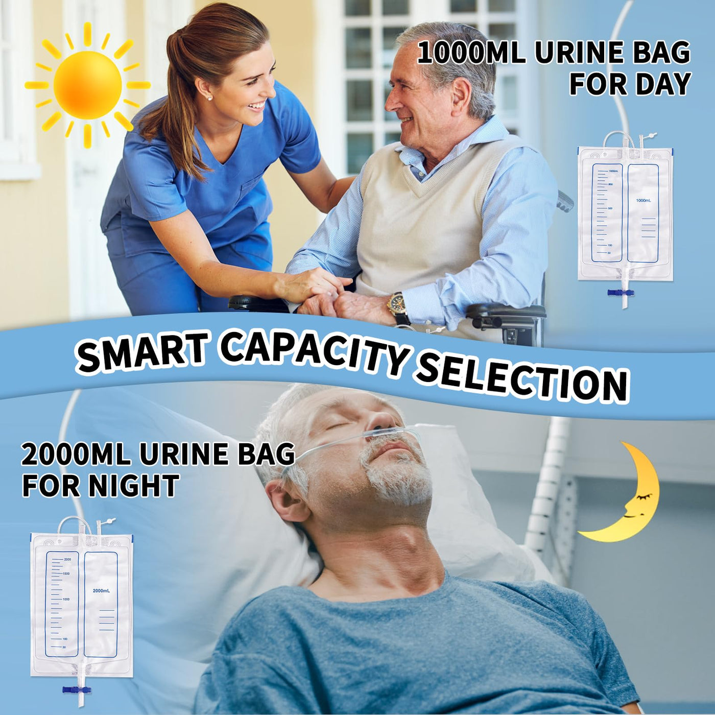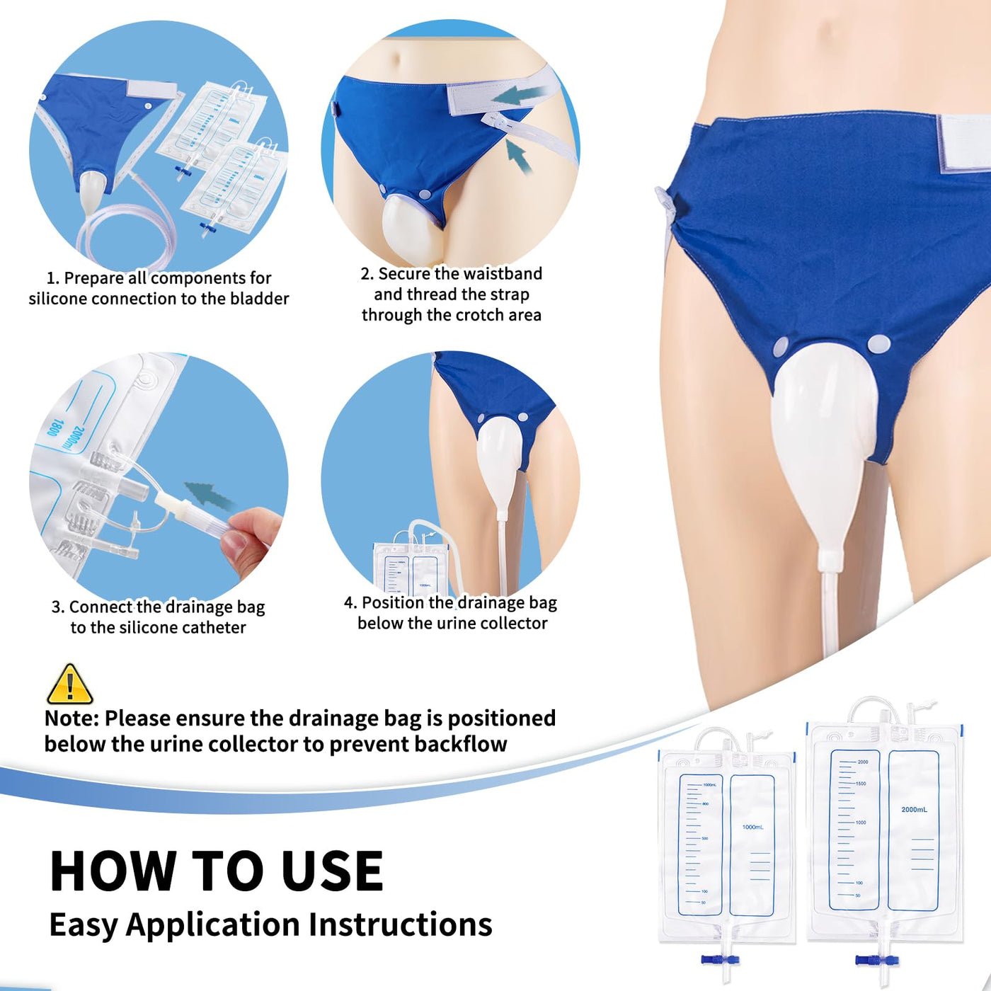 - Day & Night VersatilityThe Wearable Urine Collector Set comes with two convenient urine bags (1000ml and 2000ml), making it suitable for both daytime and nighttime use. With the included 1.2-meter reusable silicone catheter, you'll enjoy enhanced mobility and flexibility, allowing you to stay active throughout the day and night.