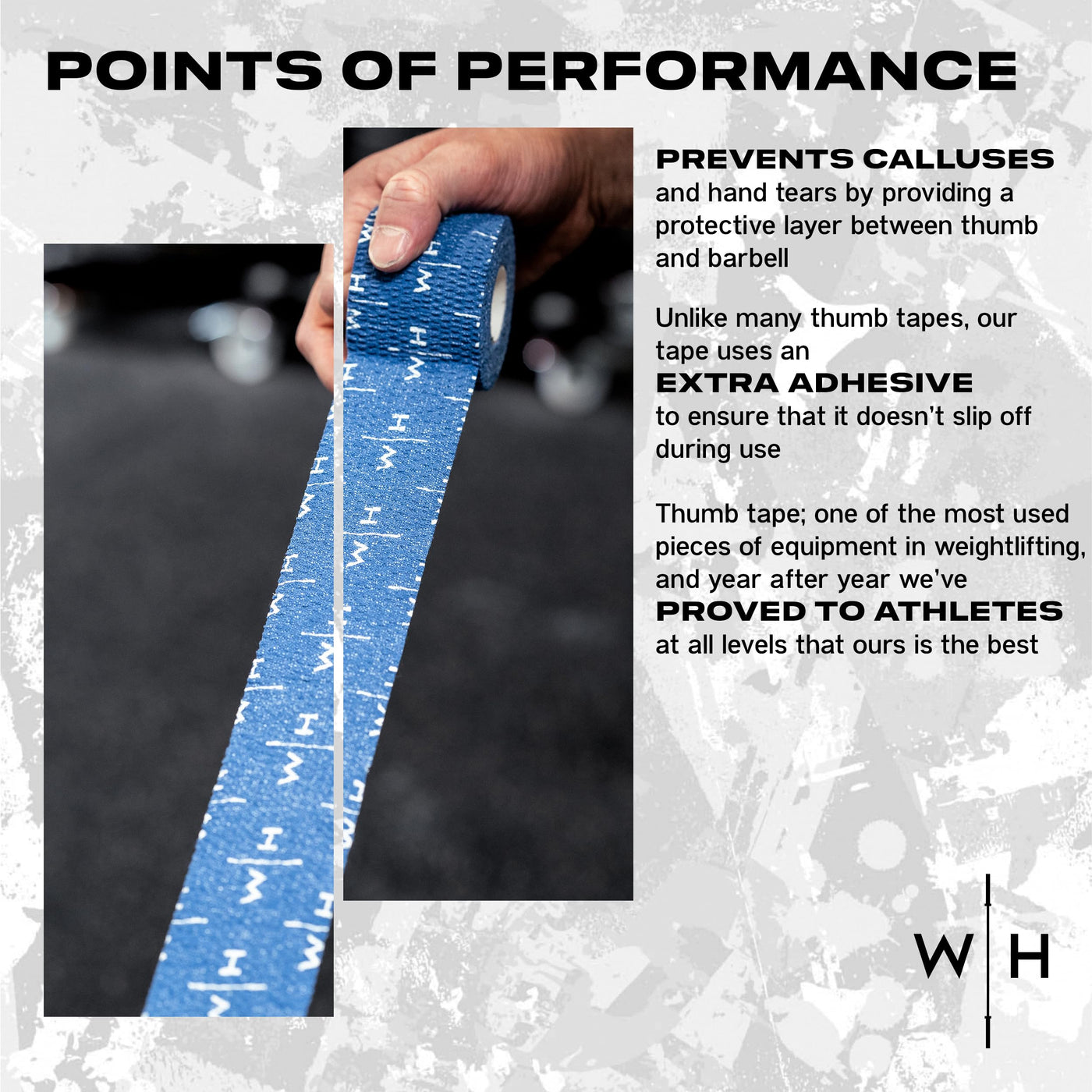 - MADE BY WEIGHTLIFTERS - Weightlifting House thumb tape was made specifically to withstand the rigorous demands of heavy lifts. It's not just weight lifting tape for the thumb; it's a versatile workout tape for hands, providing exceptional grip, optimal control and stability. Whether you need finger tape, grip tape, or sports tape, our premium-quality athletic grip tape delivers reliable performance and durability