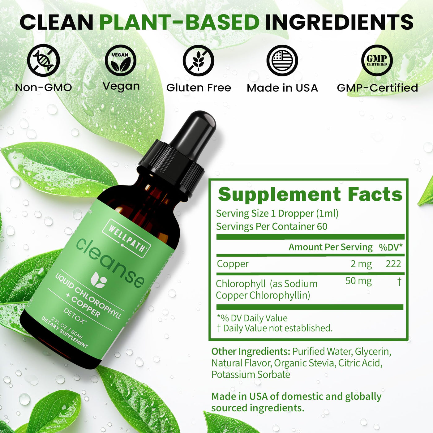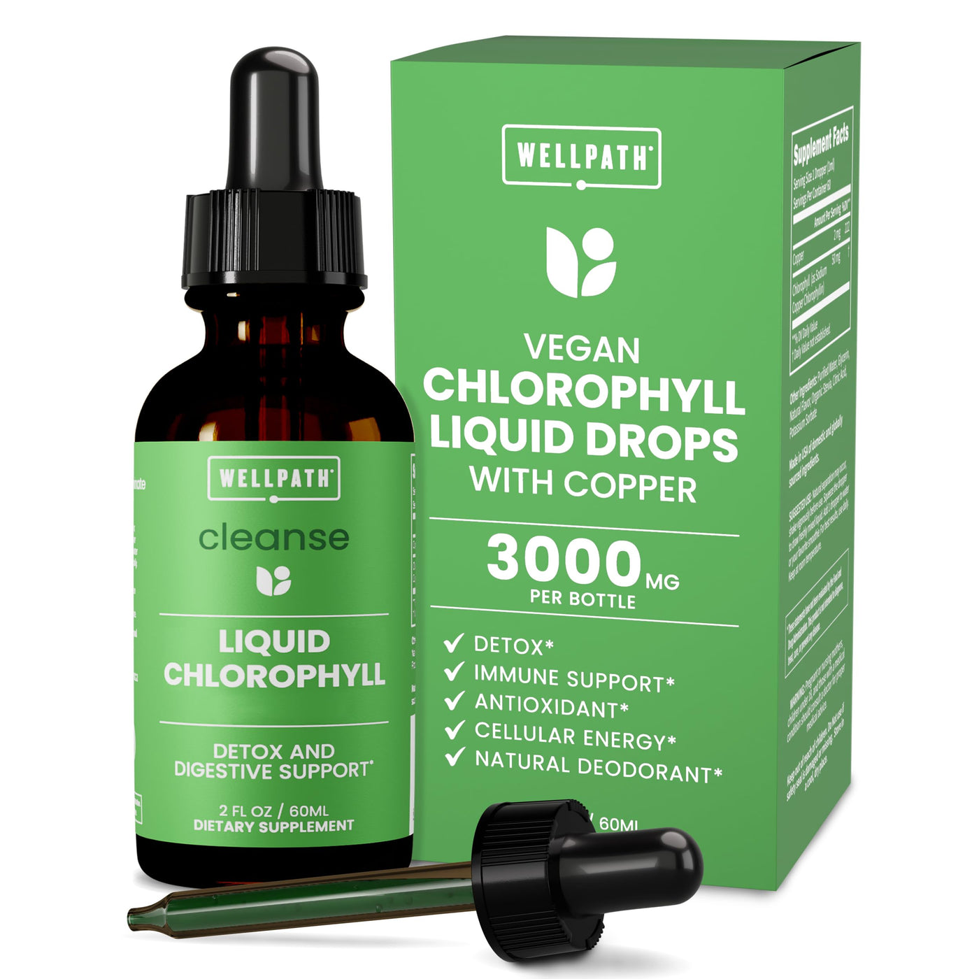 WellPath Chlorophyll Liquid Drops with Copper - High Potency Vegan Liquid Chlorophyll for Body Odor, Liver Detox, Digestion Support & Immune Support - Internal Deodorant, Made in USA, Non-GMO, 2 Fl Oz 2 Fl Oz (Pack of 1)