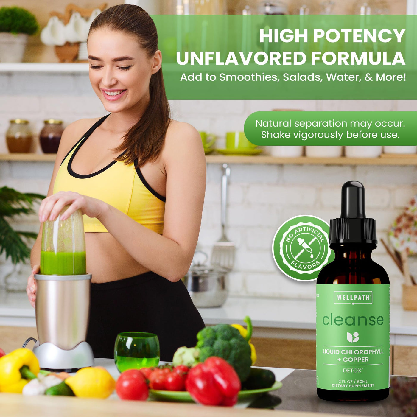 WellPath Chlorophyll Liquid Drops with Copper - High Potency Vegan Liquid Chlorophyll for Body Odor, Liver Detox, Digestion Support & Immune Support - Internal Deodorant, Made in USA, Non-GMO, 2 Fl Oz