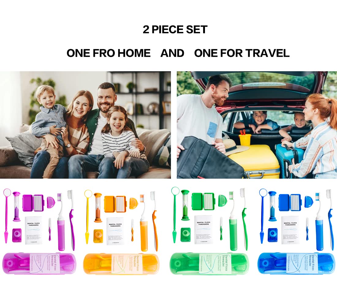 - You will get: 2 x Orthodontic Care Set, Set includes: 2*Orthodontic Toothbrush, 2*Travel Toothbrush, 2*Floss, 2*Dental Mirror, 2*Orthodontic Wax, 2*Interdental Brush, 2*Hourglass Timer, 2 floss threaders,fully meet your daily needs, one for home , one for travel.