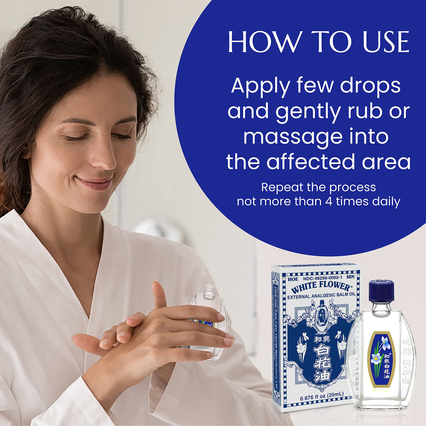 White Flower External Analgesic Balm Oil 10ml (0.338 Fluid Ounces). Uses For the temporary relief of minor aches and pains of muscles and joints due to simple backache, arthritis, strains, bruises, sprains.