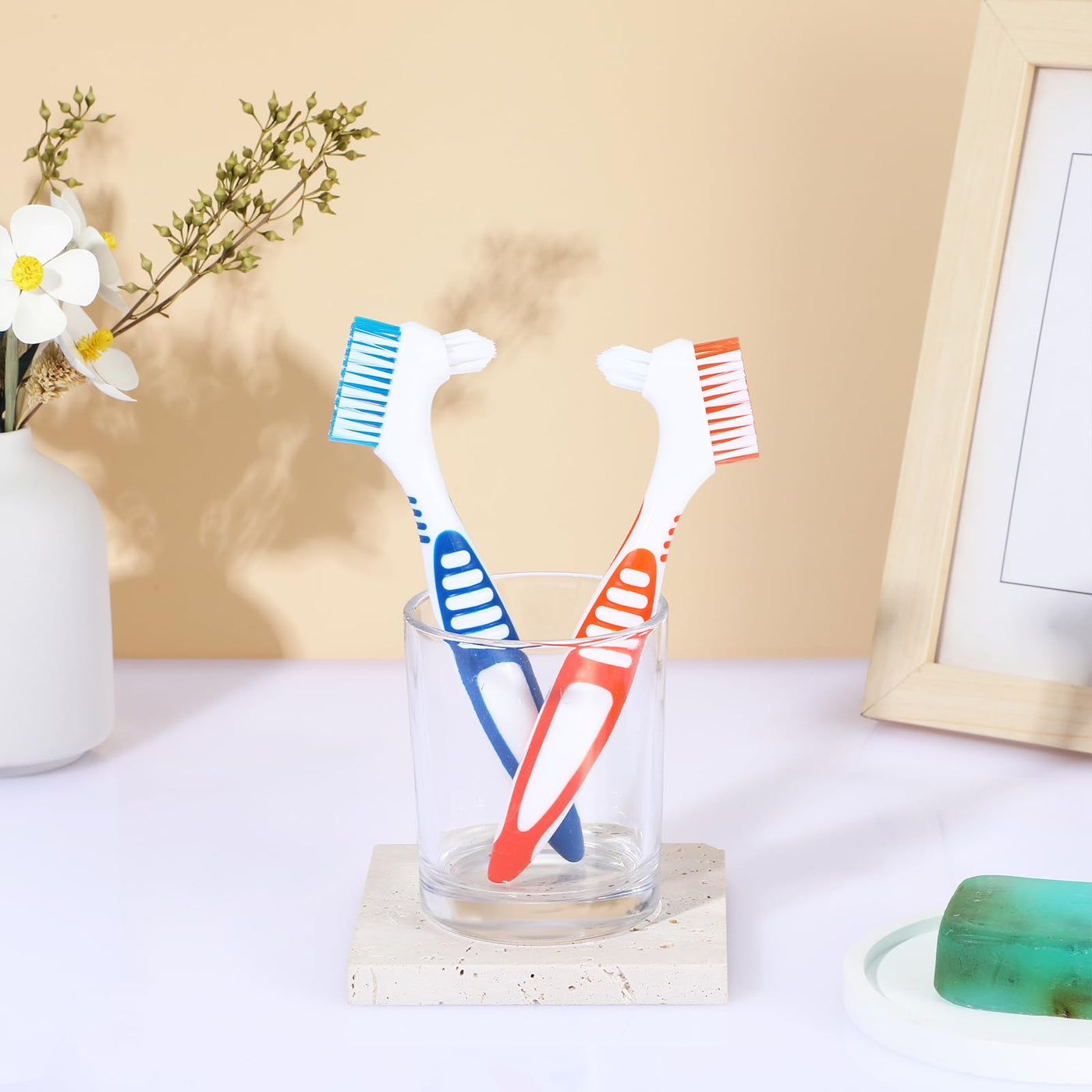 - Double-sided bristle design The double-sided brush head design of our toothbrush can easily clean most crevices and hard-to-reach crevices of dentures, effectively clean daily food leftovers, protect dental health and clean dentures.