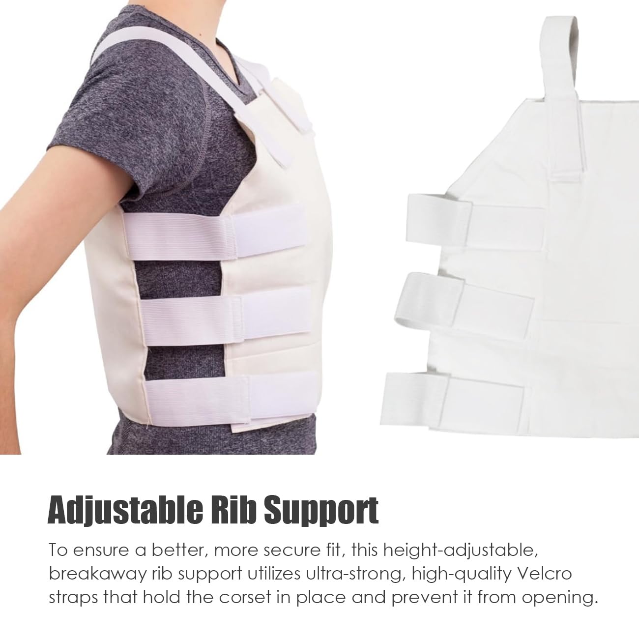- Adjustable Rib Support: To ensure a better, more secure fit, this height-adjustable, breakaway rib support utilizes ultra-strong, high-quality Velcro straps that hold the corset in place and prevent it from opening.