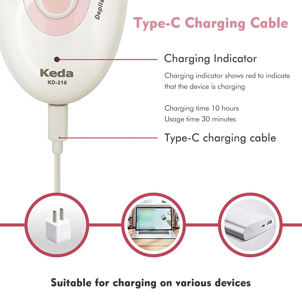 - Portable to UseIt is light in weight, small in size. Whether you are going out, traveling or going on a business trip, you can put it in your luggage or bag and take it with you at any time. Comes with a USB charging cable, you can charge the epilator with a 5V adapter, a computer, a power bank and a car charger.