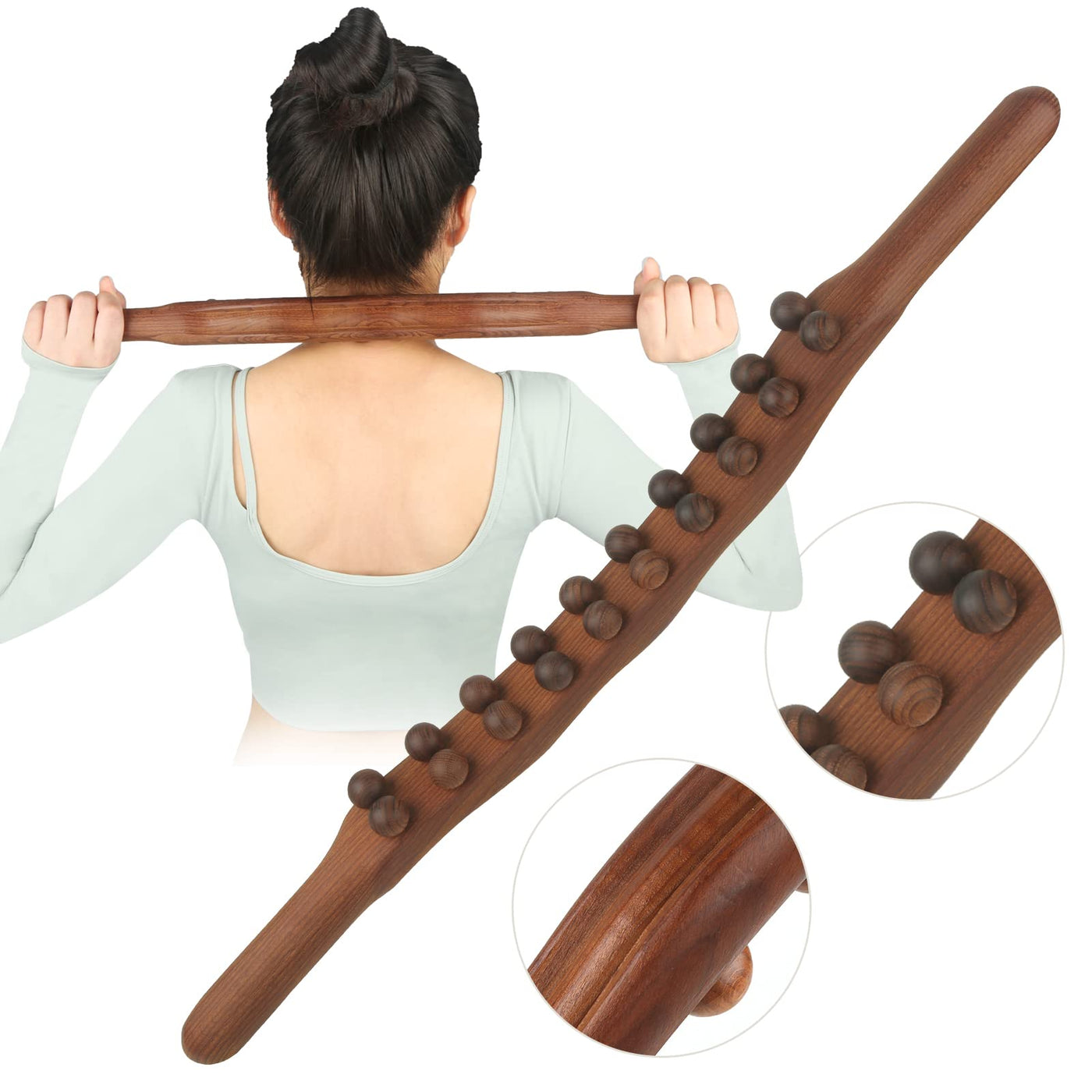 - 20 balls cellulite massage Tool length 23.5inch, Made of 100% high-strength natural beech carbonized at high temperature. With a curved design, it fits the human body and is ergonomic, the surface is smooth, no burrs, and it is friendly to the skin. If you struggle with cellulite, this is what you been looking for