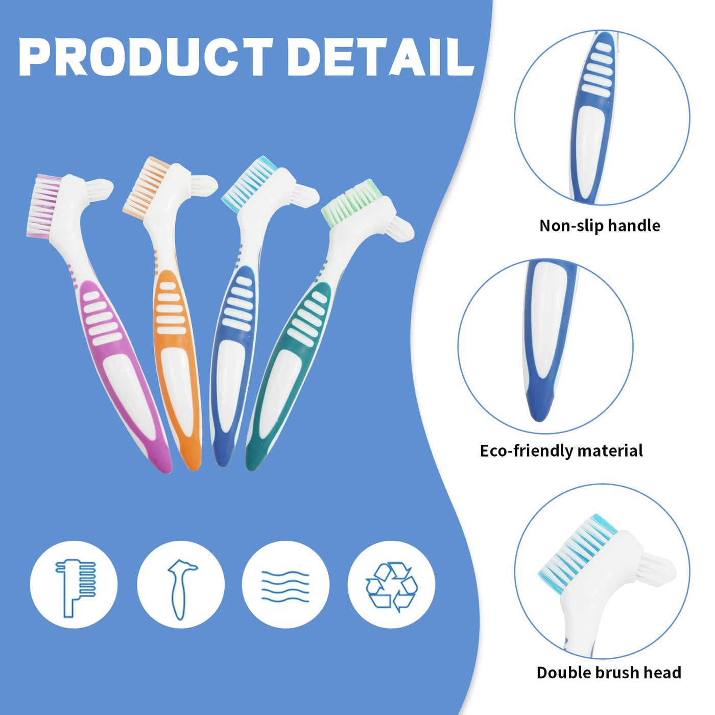 - Quality: Premium build quality, the handle of our denture brush is made of high quality plastic and rubber, while the bristles are more durable than most toothbrushes in this price range.