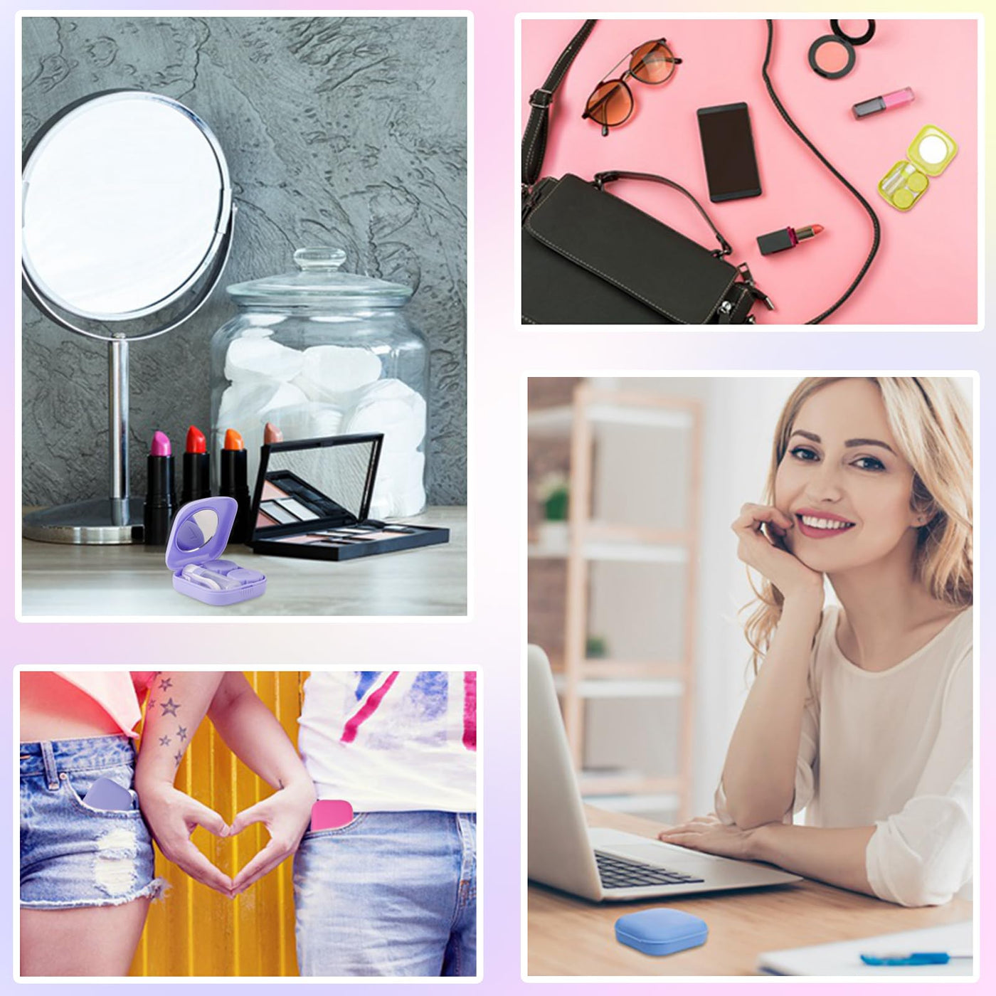 - Good giftThe set includes 4 contact lens cases, with fresh colors, blue, green, purple, pink. Large quantity, easy to use and can also be given as a gift to friends and family