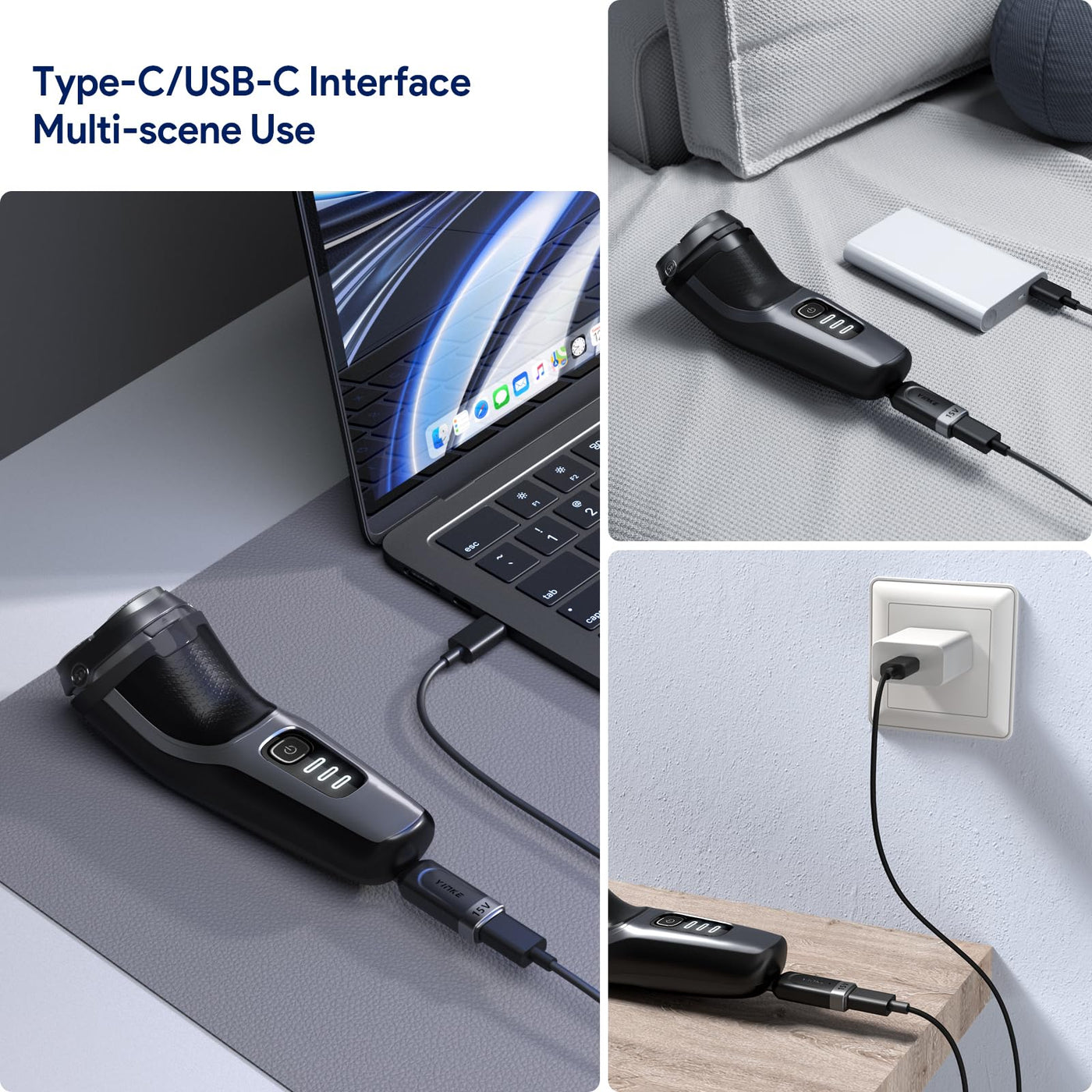 - Transforming the Traditional Charging Paradigm: With the use of Type-C shaver adapter charging converter and a Type-C charging cable, the electric shaver can be charged anytime, anywhere using a power bank, car charger, or any other compatible charging device. This convenient feature ensures worry-free shaving during your travels. Note: Charging Cable Not Included