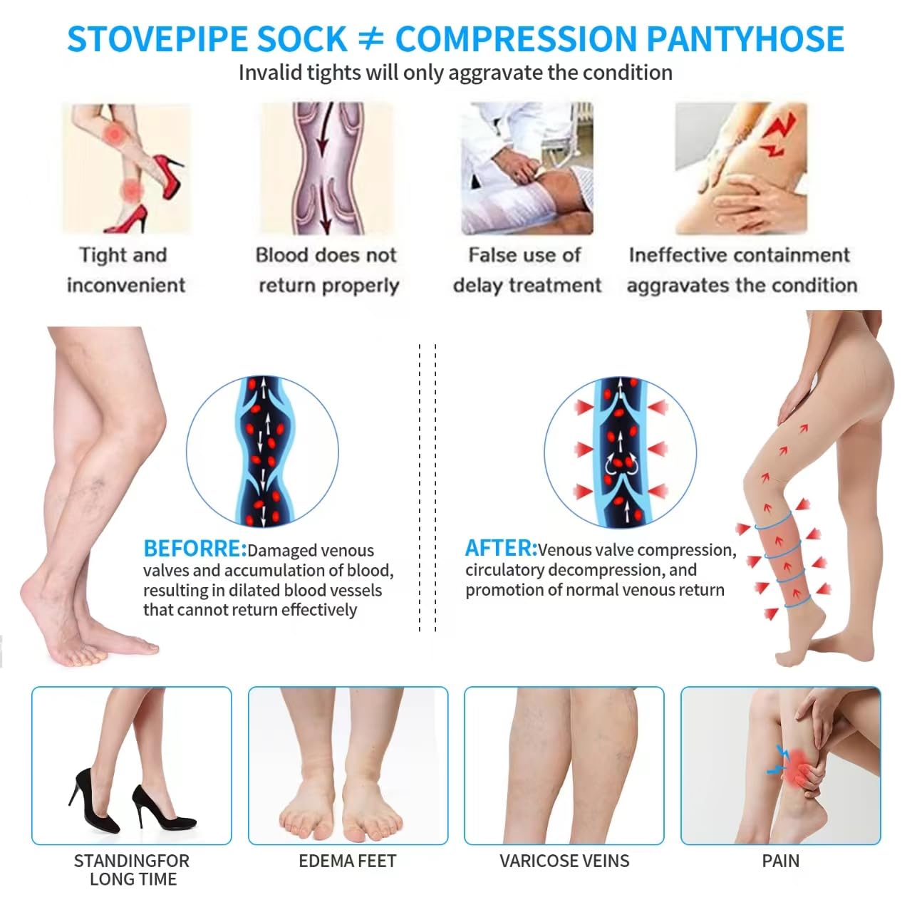 YISEMEYA 2 Pairs Medical Long Compression Stockings for Women, 20-30mmHg Women's Support Stockings, Opaque Toe Wrap, Women's Compression Tights, Great Support for Varicose Veins, Edema