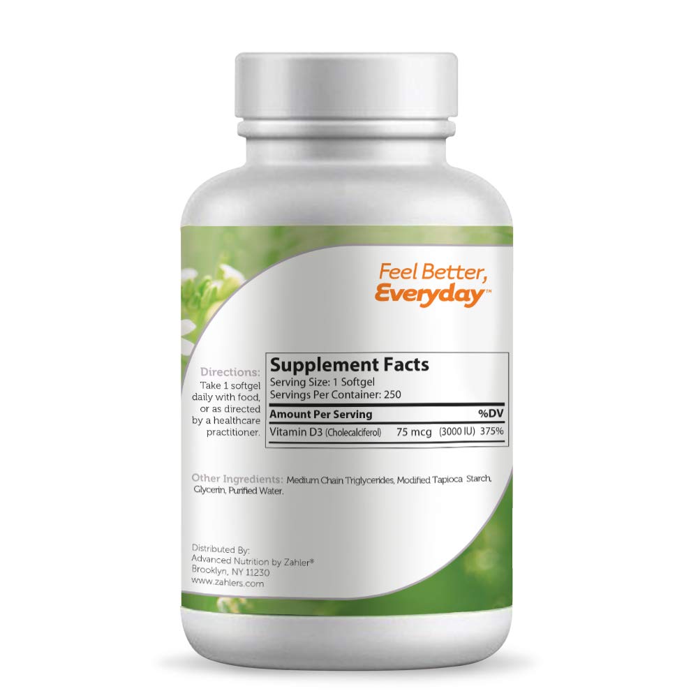 Zahler Vitamin D3 3000IU, Vitamin D3 Supplement 3,000 IU, Certified Kosher (250 Softgels) 250 Count (Pack of 1)