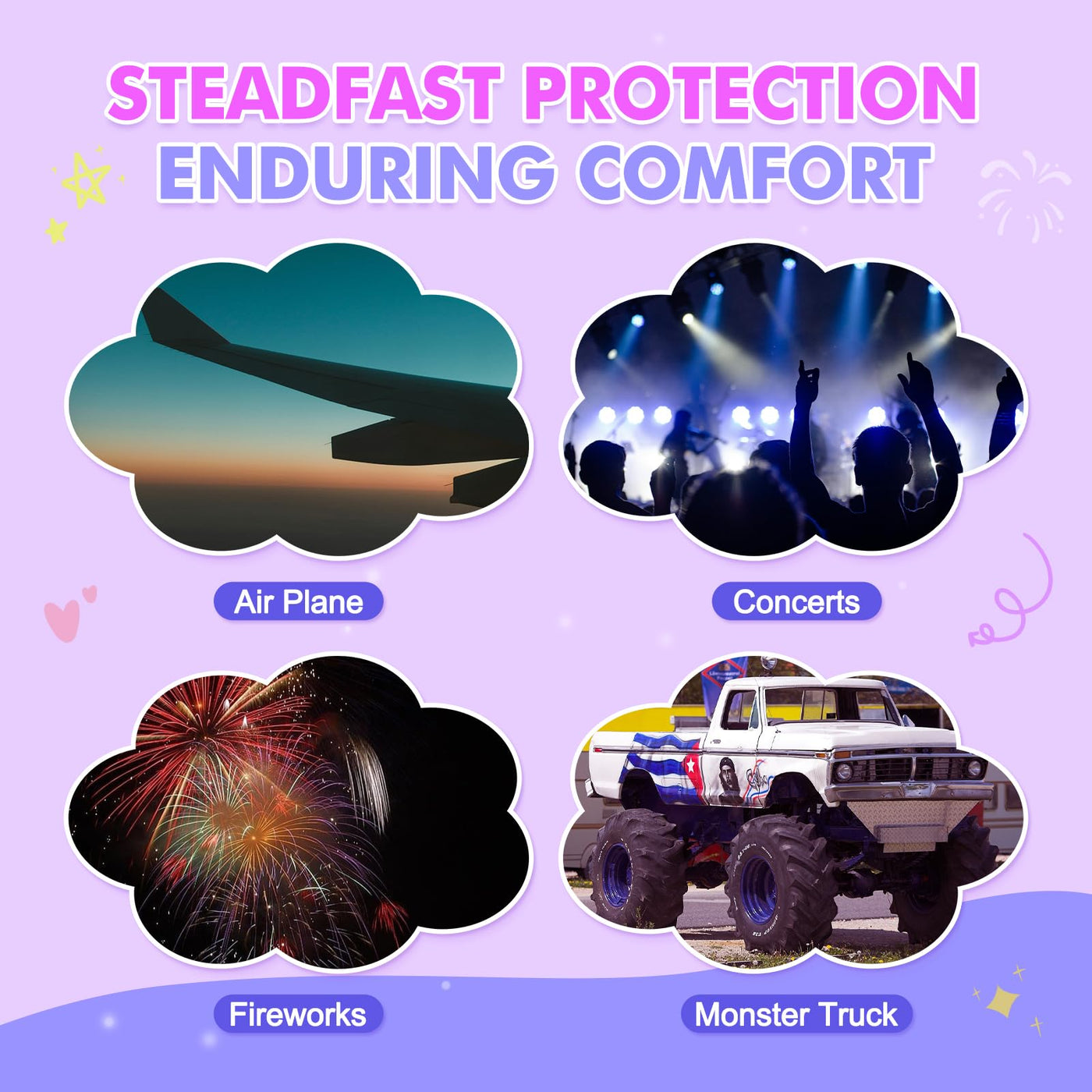 - FITS 99% HEAD SIZE: Design for children who have sensory issues and need extra hearing protection. Adults can also wear it. And these are perfect for air shows,monster jam, concerts, fireworks, travel, sports events, etc